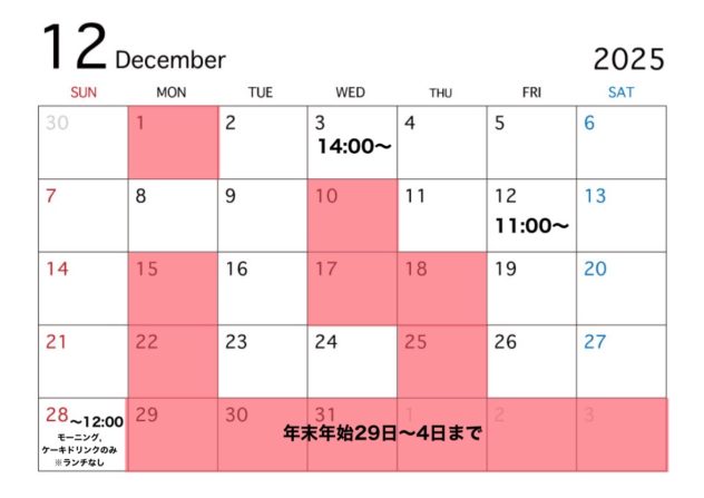 【市民会館店】12月休業日のご案内