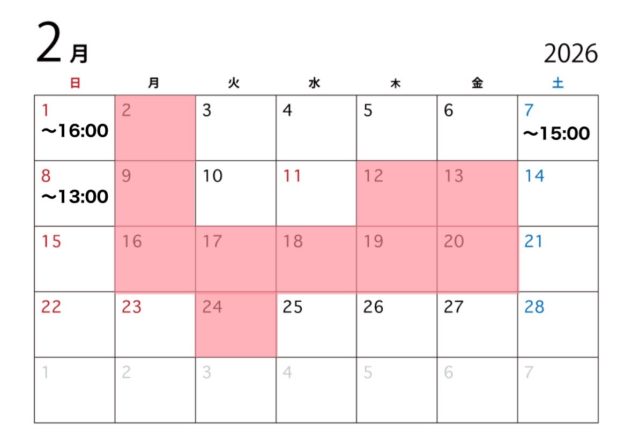 【市民会館店】2月休業日のご案内